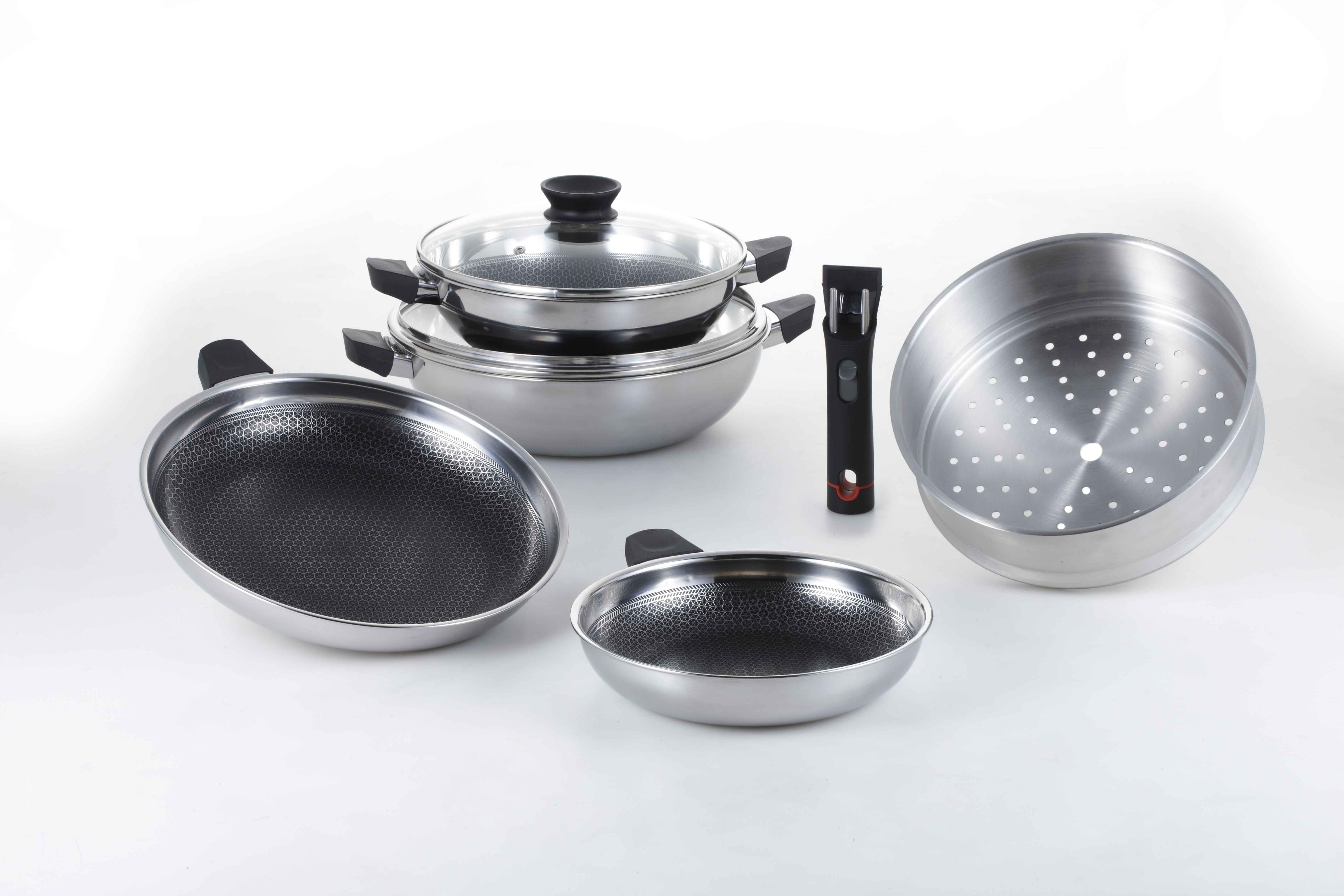 Bộ nồi chảo 08 Pcs Blackcube 3 lớp đáy từ đa năng chống dính T&K