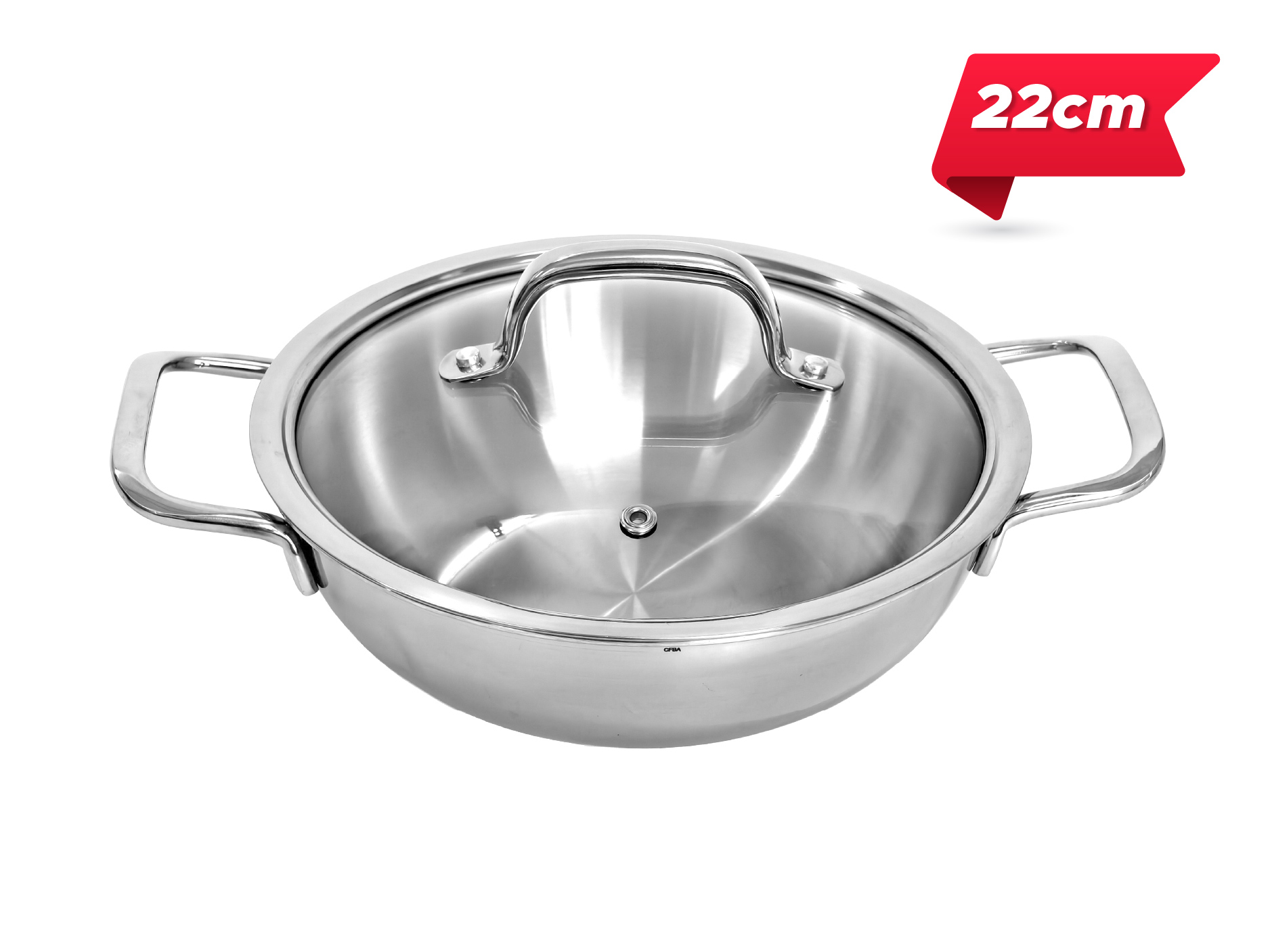 Chảo 2 quai Uni-Clad inox 3 lớp nắp kính chống dính 22cm KIMS COOK