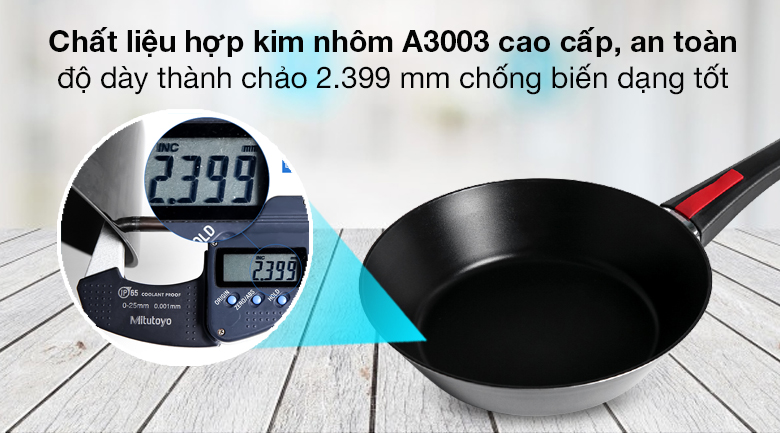 Chảo sâu lòng đường kính 28 cm chiên được 3 cánh gà cùng lúc