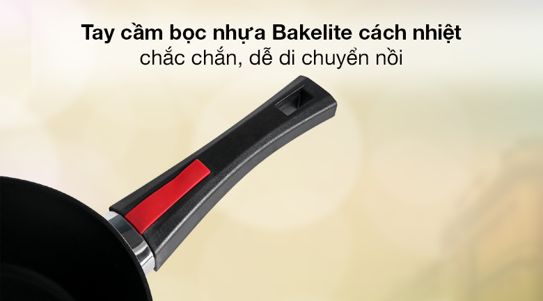 Chảo chống dính thiết kế đẹp mắt với màu đen sang trọng phối đỏ thời thượng, tô điểm cho không gian sử dụng.