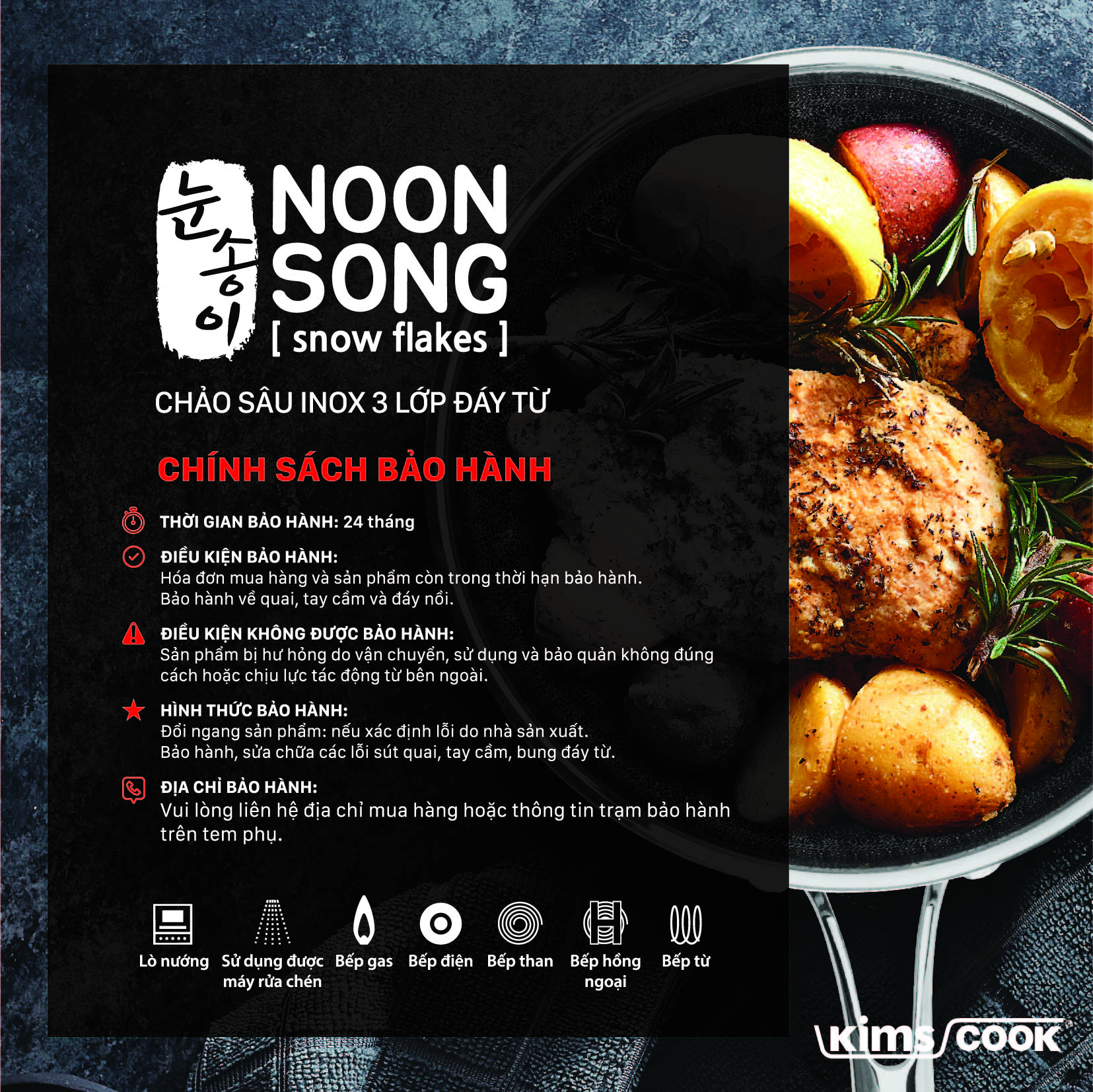 Chảo sâu Noon Song inox 3 lớp đáy từ chống dính 2 mặt Kims Cook 24cm