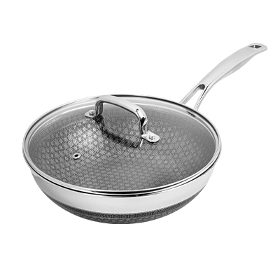 Chảo đáy từ KIMS COOK Noon Song là khoan khắc bề mặt inox để làm trồi lên những trụ nhỏ xếp hình hoa tuyết, trụ inox trồi cao che chắn và bảo vệ những tác động từ các dụng cụ nấu ăn lên lớp không dính. Lớp không dính của hãng Hàn Quốc không chứa PFOA tốt cho sức khoẻ.