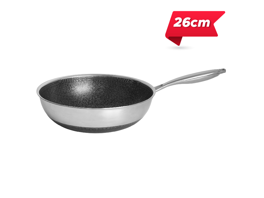 – Khả năng chống trầy, chống dính siêu bền lâu: khoan khắc bề mặt inox để làm trồi lên những trụ nhỏ xếp hình vân Make Up, trụ inox trồi cao che chắn và bảo vệ những tác động từ các dụng cụ nấu ăn lên lớp không dính. Lớp không dính của hãng Hàn Quốc không chứa PFOA tốt cho sức khoẻ.